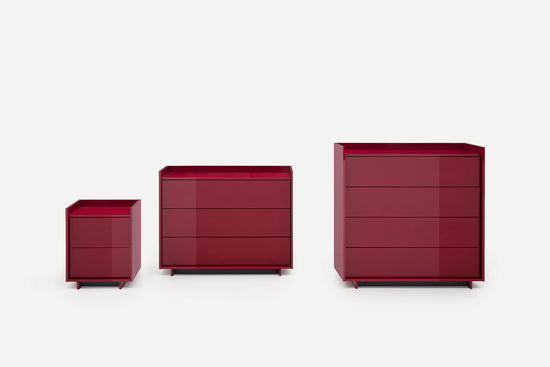 Lucrurile esențiale nu sunt niciodată de prisos. Complementele setului de dormitor Kyoto, comoda și noptiera, sunt rezultatul studiului secțiunii absolute dintre colț și linie dreaptă, într-o compoziție măsurată a suprafețelor. Cadrul exterior, mai pronunțat și mai adânc, cuprinde sertare cu deschidere push-pull, definind întregul volum al structurii cu o grație crudă. Blatul se transformă într-o nișă deschisă, o suprafață de susținere discretă, elegantă, în care poți adăuga o altă completare: o tavă cu o bază acoperită cu piele sintetică pentru depozitarea obiectelor personale și a bijuteriilor, care se potrivește perfect în interiorul profilului blatului. Baza în consolă plutește, creând un gol care înconjoară elementele, dându-le un sentiment de ușurință impalpabilă.