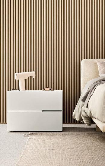 Cu designul lor subtil și detaliile distinctive, noptiera și sertarele Segno adaugă un accent proaspăt și modern oricărui dormitor. Aranjamentele compacte, modulare creează soluții personalizate care economisesc spațiu datorită gamei largi de dimensiuni disponibile. Caracteristica distinctivă a acestei linii este modul în care mânerul liniar este sculptat din fronturile excepțional de groase. Mânerele aliniate – care se pot oglindi între ele – produc o alternanță interesantă de „semne” distinctive orizontale.