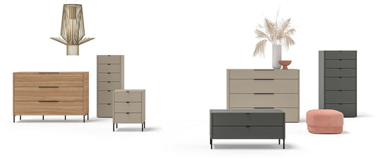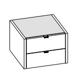 Mânerul la alegere este extern și aplicat prin șuruburi pe partea din față a sertarului din spate. Sertare echipate cu șine in sistem cu extracție completă.