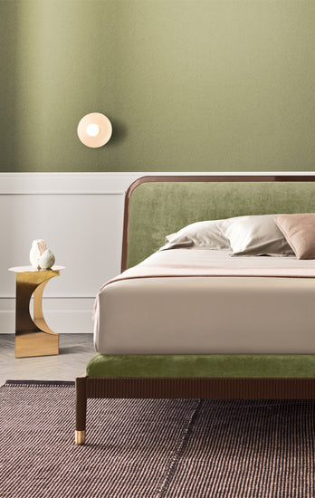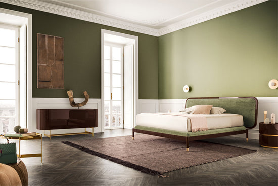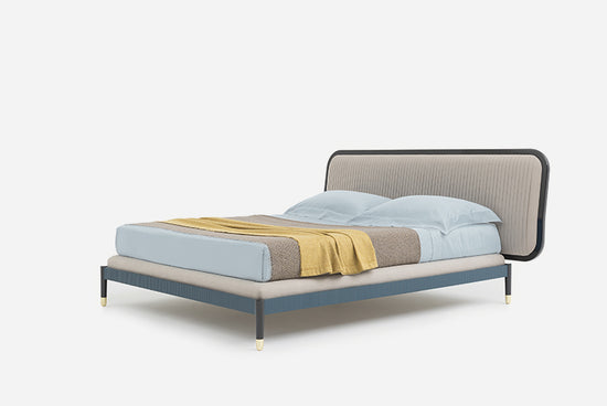 Inspirat dintr-un stil clasic cu un atractiv contemporan și legat de un design strălucitor care cu siguranță nu trece neobservat. Farmecul tradițional se îmbină folosind un limbaj estetic de actualitate, rafinat, cu nuanțe vintage. Volumele ușoare, finisajele prețioase și semnificative – precum finisajul tăbliei pliate manual – fac ca acest model să fie la fel de elegant și maiestuos și în versiunea cu tăblie simplă. Sinele grațioase ale cadrului de pat sunt din lemn canelat, lăcuit și găzduiesc cadrul moale și căptușit al soclului de pat.