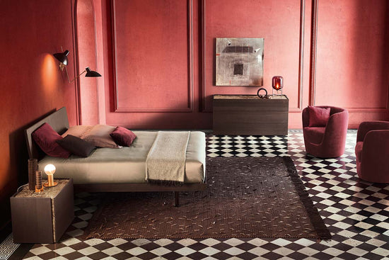 Un pat versatil disponibil în mai multe versiuni. Gusturile individuale, folosite pentru personalizarea diferitelor elemente, fură aici spectacolul. Rama constă din linii simple, curate și este disponibilă în lemn, lăcuit mat sau lucios sau cu finisaj texturat. Există două opțiuni pentru bază: o versiune clasică cu picioare sau o versiune cu un compartiment de depozitare format din volume înclinate spre interior care sporesc caracterul practic și conferă patului un aspect ușor și aerisit. Tăblia poate fi tapițată cu material textil sau piele.