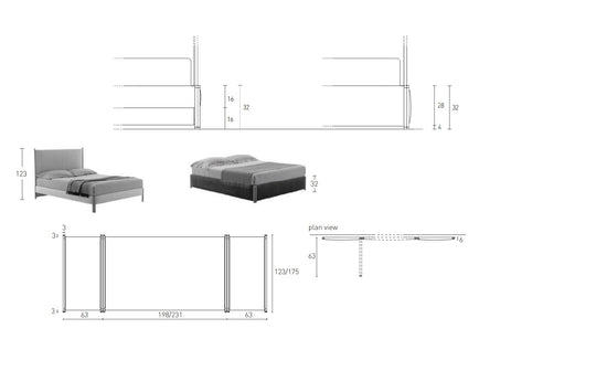 disponibile includ varianta cu rama de pat si cel cu sommier, in care este posibil sa includa tarcul de joaca recipient. Învelișul este personalizabil în țesături din colecție.
