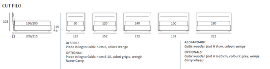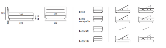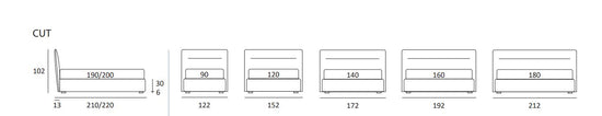 Dimensiuni ext : L.122/152/172/192/212 cm x P.210/220 cm x H.31/36 cu spatar de 102/104/105 cm
