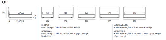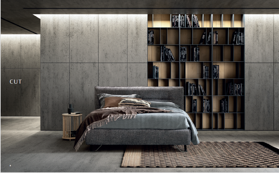 Pat matrimonial Cut, cu design simplu, modern potrivit pentru orice dormitor. Disponibil in mai multe variante de tesaturi si piele.Structura din pal si retea din lemn stratificat. Reteaua poate fi fixa sau rabatabila fiind disponibila chiar si o varianta cu spatiu de depozitare.Tesaturile sunt foarte usor de curatat, putem alege modele ce resping apa sau sunt rezistente la pete.