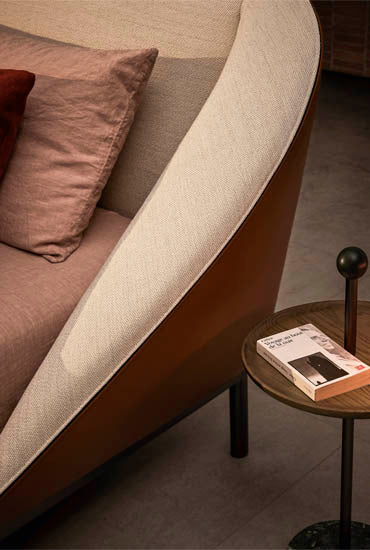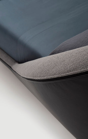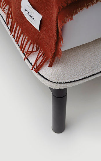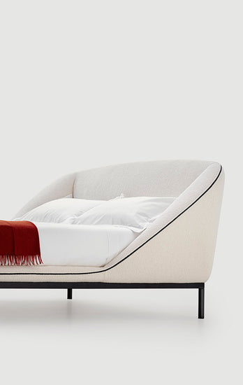 Ca un omagiu adus duminicii, zilei de odihnă, patul Domenica vă invită să vă relaxați și să vă întindeți într-o îmbrățișare solidă, caldă și protectoare. Un pat în care te poți relaxa, citi și întinde pe îndelete, îmbrăcat ușor de formele moi ale unei structuri care creează un colț sigur, intim. O singură linie continuă desenează o siluetă delicată, organică. Fermoarul expus, este o caracteristică cheie a profilului patului, transformând fermoarul dintr-un element funcțional într-un detaliu distinctiv. Conturul patului se lărgește maiestuos și apoi se curbează în jos într-o diagonală ascuțită parcă ar închide forma pentru a proteja, ascunde sau adăposti. Este mai mult decât un pat. Este un loc și, într-o oarecare măsură, de asemenea, o piesă de arhitectură interioară concepută ca un loc pentru a-și liniști emoțiile. Baza metalică adaugă mai multă ușurință structurii, dându-i aspectul de plutire în spațiu. Există un container opțional sub pat pentru o mai bună organizare a depozitării.