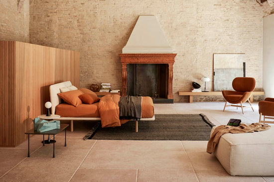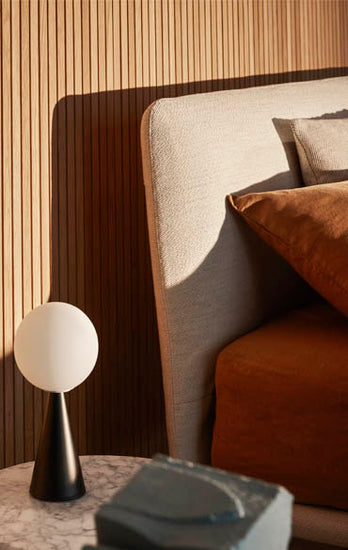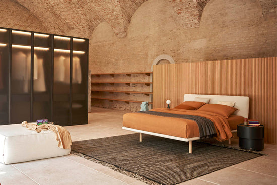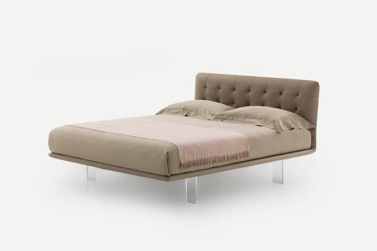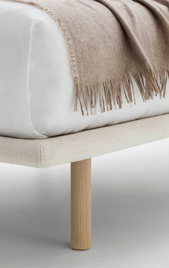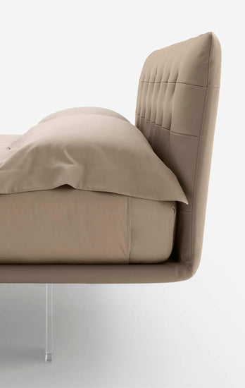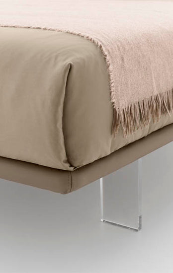 Versatilitatea devine o valoare adăugată. Proiecta dimensiunile minime și mici se traduc în capacitatea de adaptare cu discretie si eleganta la fiecare mediu. Ca un fir continuu, tablie si cadrul de pat, acoperit în întregime, creează un aspect unic formă fără sudură. Tablia captusita este căptușeală din material textil sau piele, matlasată manual cu manoperă capitonné sau într-o versiune netedă. Geometrie liniar și aproape bidimensional cel al picioarelor, disponibil în plexiglas, lemn, lac mat și