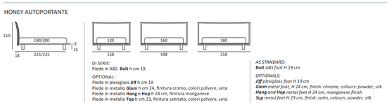 - picioare disponibile in mai multe finisaje si materiale
