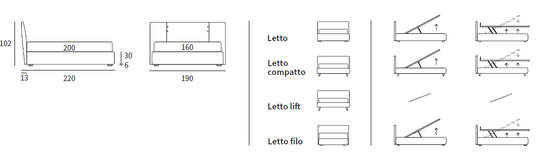 Dimensiuni ext : L.210/220 cm x P.150/170/190/210 cm x H.36 cu spatar H. 102 cm
