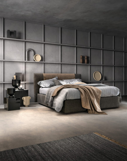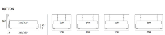Pat matrimonial Button o piesa de mobilier cu design modern, remarcabil datorita sptarului acoperit. Disponibil intr-o gama variata de culori si materiale textile sau ecopiele , cu structura din pal si somiera din lemn stratificat. Tapiteria poate fi spalata, patul fiind in totalitate dehusabil.