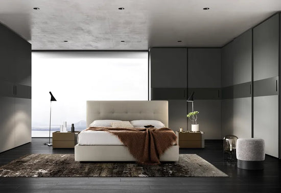 Mobilierul umple și îmbrățișează un spațiu de vis, aproape suspendat în timp. Podeaua inchisa, opaca este humusul din care par sa infloreasca patul, noptiere si dulapuri, gasind un echilibru natural in spatiu. Poziția fiecărui element este articulată în jurul patului, un punct focal și de distribuție, o forță de atracție gravitațională și un pivot esențial în viața noastră.