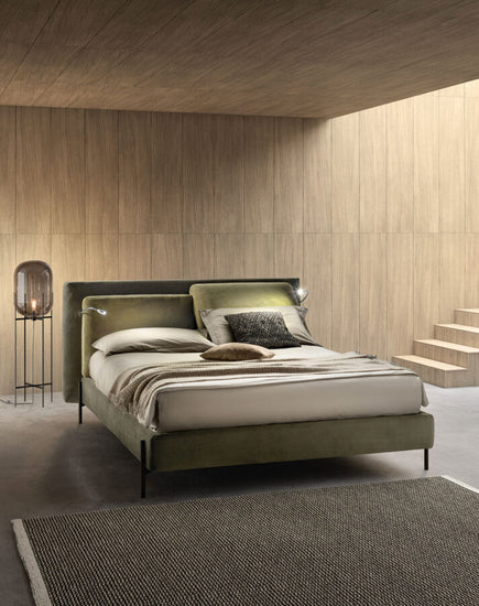 Un pat construit sa fie in acelasi timp placut ochiului, dar si practic. Acesta este dotat cu lumini led pe spatar si doua perne mari rabatabile. Este disponibil cu si fara spatiu de depozitare, are structura din pal si somiera din lemn stratificat. Pentru alegerea finisajelor avem o gama larga de culori si materiale. Fiecare material fiind rezistent la murdarie si la contactul cu apa. Poate fi spalat, este dehusabil in varianta pe tesatura si partial dehusabil in varianta de ecopiele .