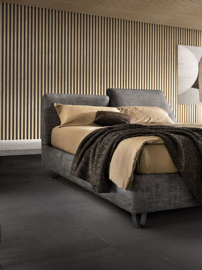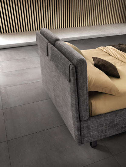 Pat matrimonial cu spatar rabatabil ce sporeste nivelul de confort. Are un design modern si se potriveste foarte bine oricarui dormitor. Este in totalitate dehusabil si lavabil pentru variantele din tesatura si partial pentru cele din piele. Structura patului este din pal iar somiera din lemn stratificat. Pentru alegerea tesaturilor avem o gama larga de materiale si culori. Disponibil pentru orice marime de saltea.