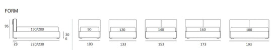 Dimensiuni ext : L.103/133/153/173/193 cm x P.220/230 cu spatar H. 95 cm