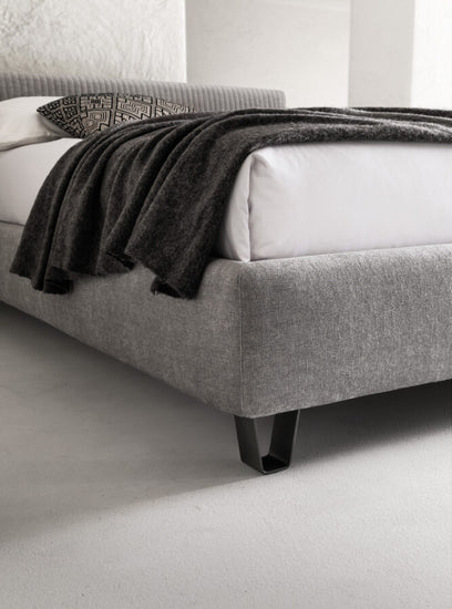 Finisaje disponibile , tesatura si ecopiele. Este in totalitate dehusabil pentru variantele din tesatura si partial pentru cele din piele/ecopiele. Structura patului este din pal iar somiera este din lemn stratificat.