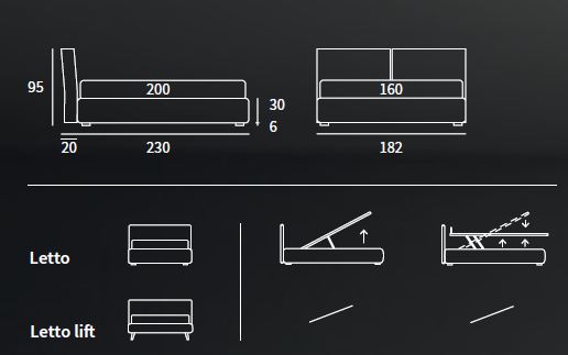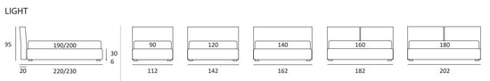 Dimensiuni ext : L.112/142/162/182/202 cm x P.220/230 cm cu spatar H. 92 cm