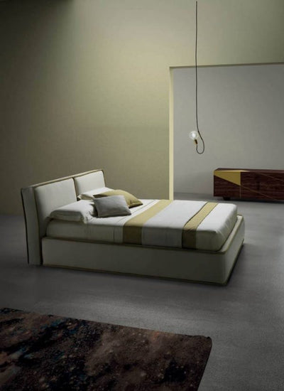 Un pat cu design simplu, curat, modern, disponibil cu si fara depozitare, cu structura din pal si somiera din lemn stratificat.