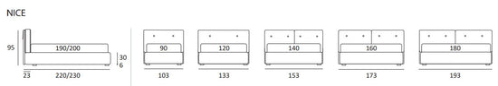 Dimensiuni pentru saltea de : L.90/120/140/160/180 x P.190/200 cm