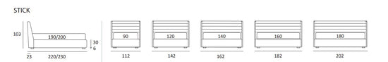 Dimensiuni ext : L.112/142/162/182/202 cm x P.220/230 cm cu spatar H.103 cm