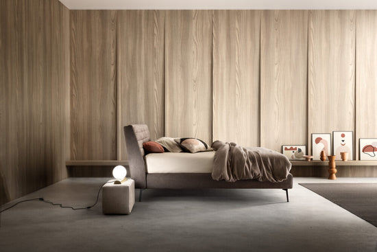Pat matrimonial cu design modern, ce poate fi piesa principala in amenajarea dormitorului. Disponibil pentru toate marimile de saltea, cu structura din pal si somiera din lemn stratificat. Ca si finisaje putem alege dintr-o gama variata de culori si materiale. Poate avea spatiu de depozitare.