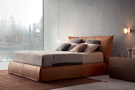 Căldura confortabilă a unui cuib confortabil: volumele generoase, învăluitoare sugerează relaxare totală. Punctate armonios de un ritm vertical, proporțiile acestui pat se exprimă în cel mai mare grad în tăblia patului care îmbrățișează întreaga înălțime a cadrului patului. Perna mare, înaltă de un metru, cu umplutură generoasă de pene, este un suport moale pentru cap și spate. Acest pat este disponibil în varianta de divan, căptușit și tapițat cu material detașabil, piele sau piele artificială.