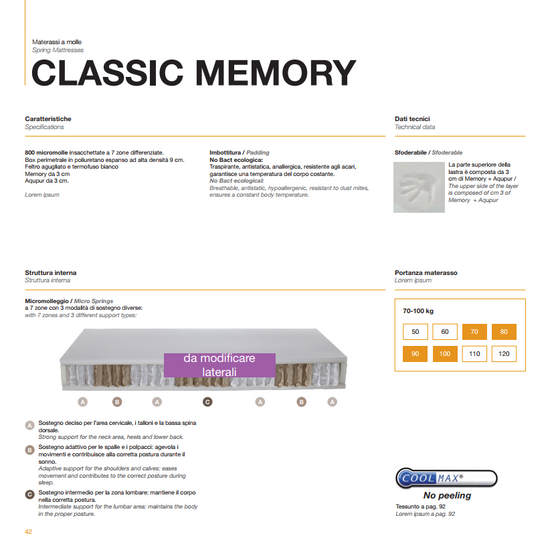 Descoperiți toate saltelele duble Manifatture dell'Adriatico, un bun specialist în somn, precum acest model Classic Memory cu arcuri impachetate.