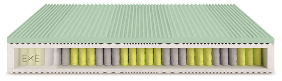Structura de susținere ExE 1.2 POCKET de înaltă densitate (aproximativ 1000/1200 de arcuri într-o saltea matrimonială), cu arcuri speciale din oțel cu 9 zone de confort diferențiate, adică realizate cu diferite grosimi de sârmă.