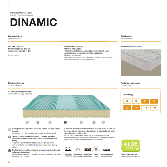 Saltelele duble din spumă cu memorie Manifatture dell'Adriatico sunt rezultatul cercetărilor de mai mulți ani și în timp util asupra nevoilor reale ale persoanei legate de odihnă. Dacă doriți să vă bucurați de o odihnă liniștită și reconfortantă, vizitarea noastră vă va permite să vedeți direct toate cele mai bune soluții pentru somnul dvs. de pe piață. Salteaua Dinamic de la Manifatture dell'Adriatico garantează suport corect pentru toată lumea, sau mai degrabă poziția corectă a coloanei vertebrale în timpul nopții. Pentru utilizarea finisajelor inovatoare și a proceselor de producție de ultimă oră, Manifatture dell'Adriatico se definește ca expert în odihnă: soluțiile sale de mare valoare vă așteaptă. Linia bine aprovizionată de soluții de la cunoscutul și cunoscutul brand garantează tuturor să găsească cel mai bun model de saltea pentru nevoile sale.