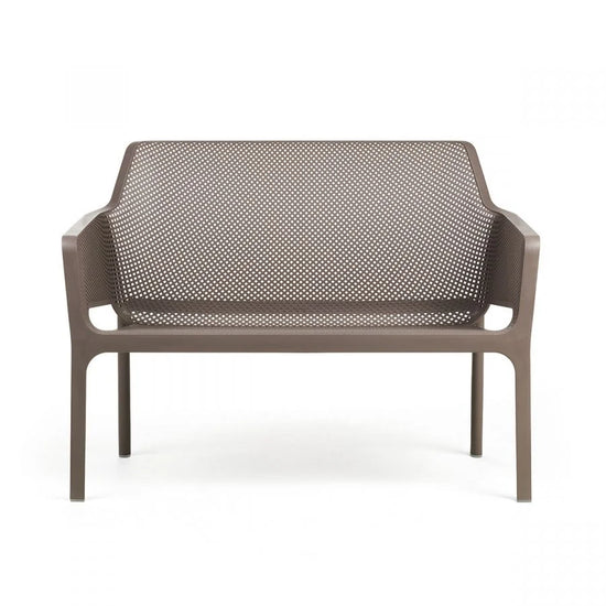 Romantica si primitoare, Net Bench este o banca de exterior cu doua locuri din fibra de sticla. Decorat cu un model radial de perforații pătrate, are linii curate, un profil subțire fără sudură și o gamă largă de perne potrivite.