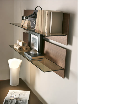 Raft furniruit din frasin sau nuc canaletto. Raft din sticla naturala securizata sau transparenta bronzata (8 mm grosime).