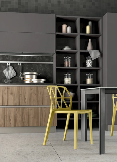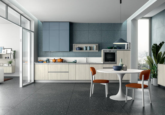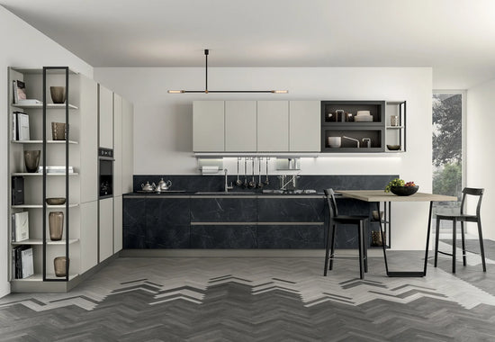 Un look sofisticat si primitor, unde bucataria este imbracata in solutii niciodata banale puse in evidenta de finisaje.