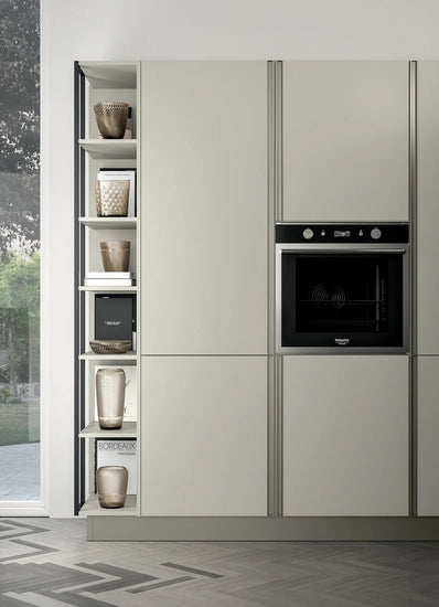 Manerul aplicat in partea superioara a usii garanteaza curatenia vizuala tipica modelelor cu deschidere fara maner.