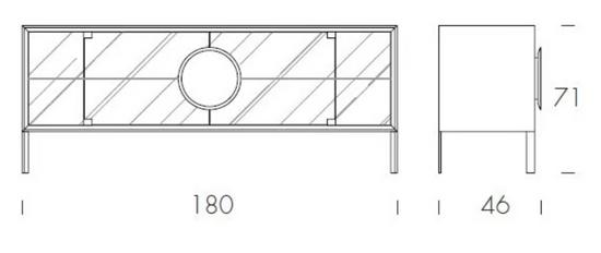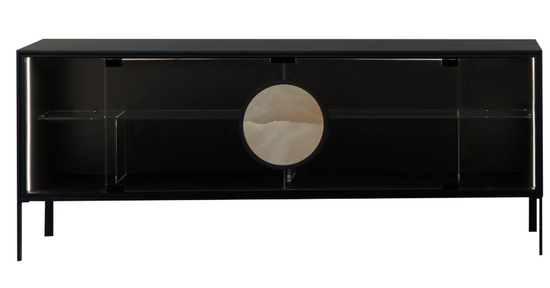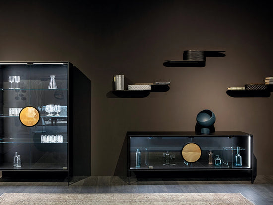 Dot este un bufet minimal șic, cu o formă ușoară și un caracter puternic, care își ia locul în medii atemporale. Design și detalii: un cerc perfect care acționează ca un mâner din lemn sau gresie porțelană îi îmbunătățește estetica cu ușile din sticlă transparentă sau fumurii.