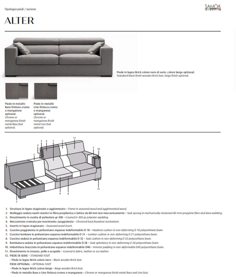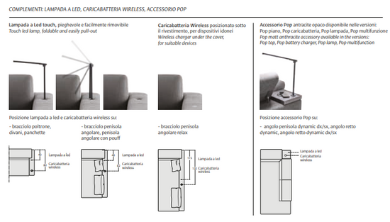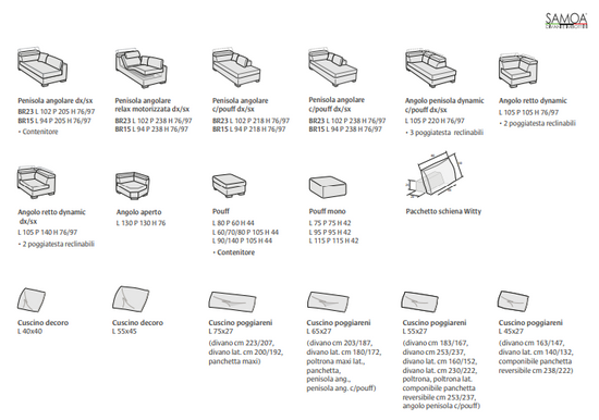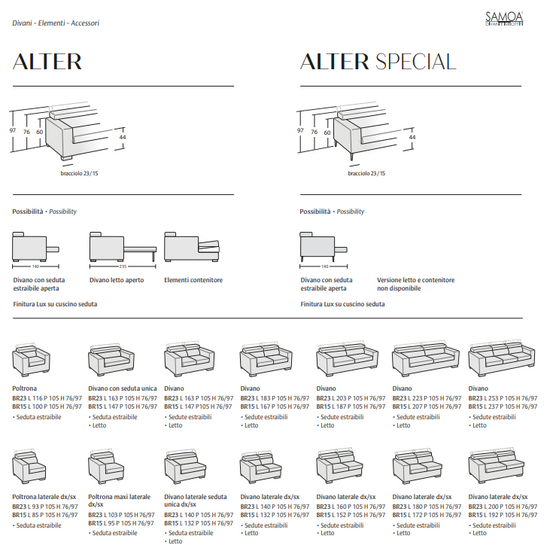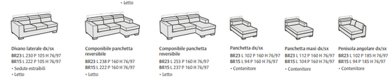 Liniara: L.223/207 cm P.105 cm H.76/97 cm