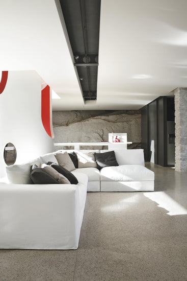 Modularitatea ca element de plecare pentru realizarea unei canapele care poate satisface cele mai variate nevoi compoziționale.