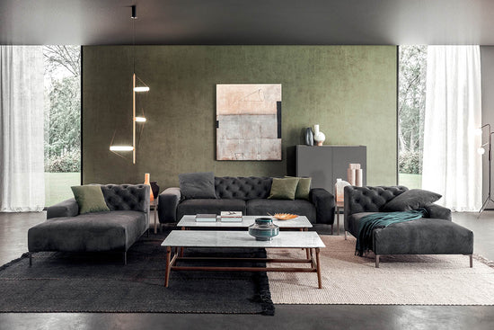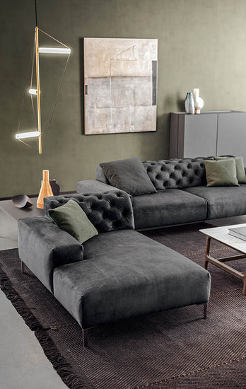 dă caracter fiecărui mediu. Pernele abundente definesc un design liniar si rafinat, cu geometrii în general pătrate. Spătarul poate fi realizat într-o singură versiune