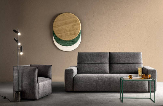 Deep Real/ Deep Hit– colectia Relax;  este o canapea esențială cu linii moderne rotunjite, sezuturi confortabile și moi, spatar practic reglabil , de asemenea  în același timp creativă datorită personalizării detaliilor și alternanței accesoriilor și finisajelor.