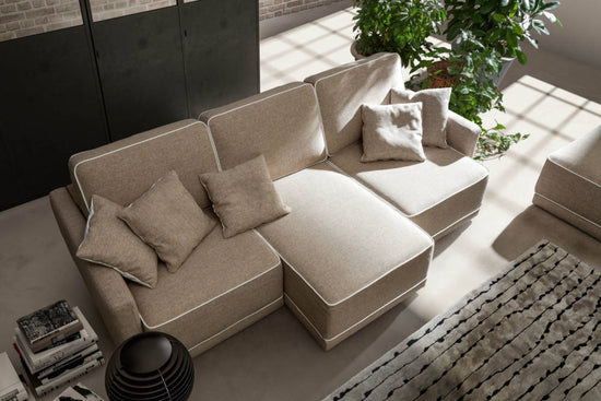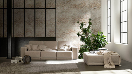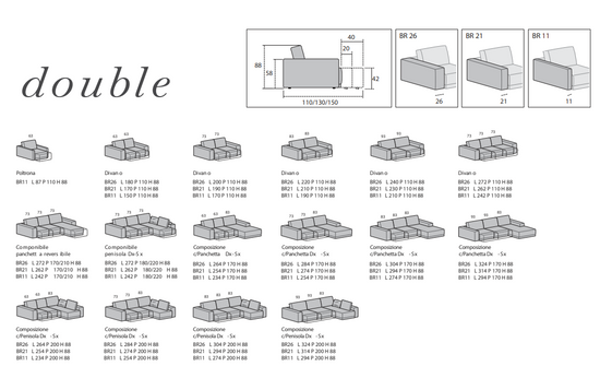 Canapea Double: apartine colecției Flow. Double devine protagonista spațiului. Formele sunt îmbunătățite de posibilitatea de a alege culori și finisaje contrastante.