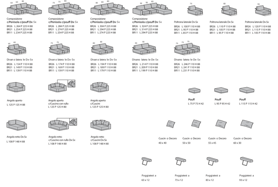 Liniara: L.220/210/190 cm P.110 cm H.88 cm
