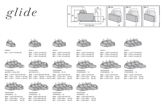 Glide este o canapea versatilă și confortabilă. Formele în mișcare vă permit să mobilați liber, oferind o plăcere fără precedent și surprinzătoare.