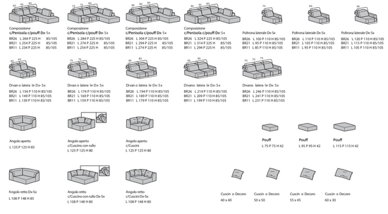 Liniara: L.220/210/190 cm P.110 cm H.85/105 cm
