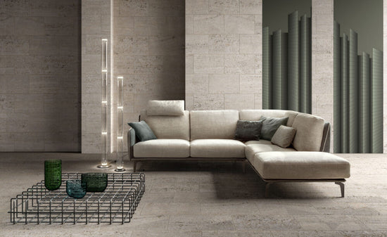 Lejeritatea structurală și pernele moi amestecate din pene fac din Living un proiect cu un design armonios realizat cu materiale rafinate și manopera fină.