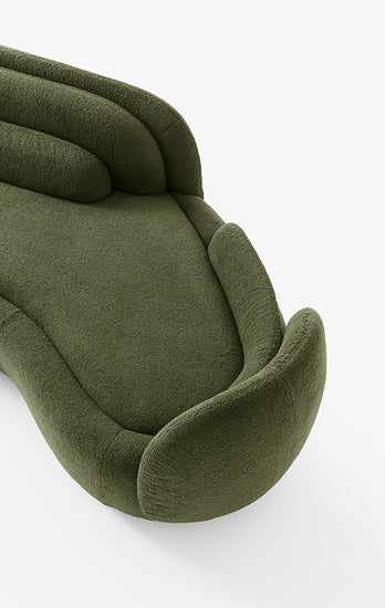 Carcasa fotoliului este alcătuită din diferite planuri, într-un crescendo evocator care amintește de petalele unei corole. Canapea, cu aceeași matrice formală, devine un scaun regal și rafinat. Geometriile modulare vă permit să creați combinații infinite, jucându-vă cu diferite niveluri și înălțimi, goale și pline. Întreaga structură este acoperită cu țesătură, într-un continuum cromatic și material între bază și scaun.