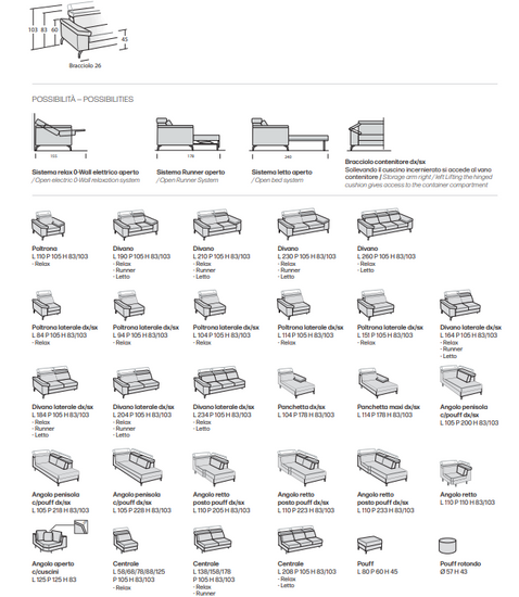 Liniara: L.230 cm P.105 cm H.83/103 cm