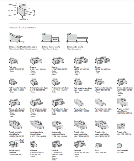 Liniara: L.226 cm P.105 cm H.83/103 cm