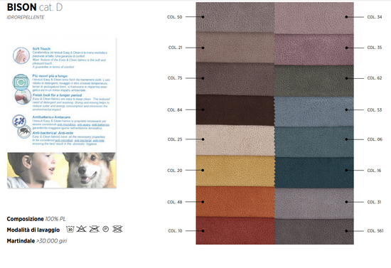 Canapeaua este dehusabila in totalitate pentru variantele din tesatura si partial pentru cele din piele. Poate fi extensibila, iar pentru alegerea finisajului avem o gama larga de culori si materiale.