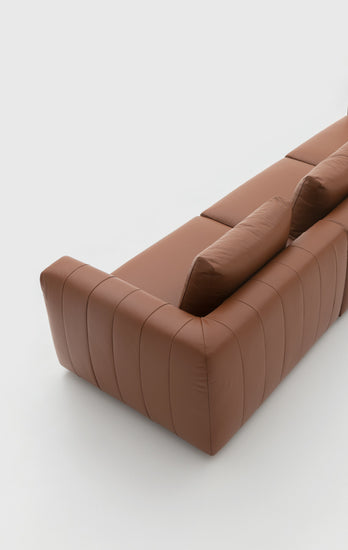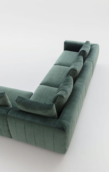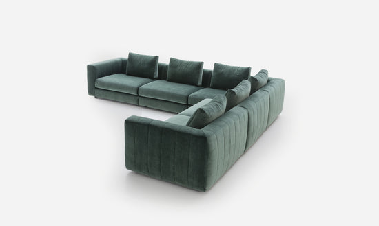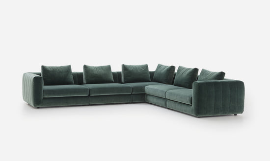 cu detalii delicate care îi înfrumuseţează estetica. Cotierele, spătarele și pufurile se caracterizează prin matlasarea cu șipci verticale ton pe ton: manopera speciala creeaza jocuri elegante de lumină pe suprafeţe, dezvăluindu-se ca semn grafic distinctiv și rafinat. Diferitele module - laterale, coltar, central, puf si sezlong - permit pentru a crea configurații pe măsură, perfecte pentru fiecare mediu. Acoperirea, personalizabila cu
