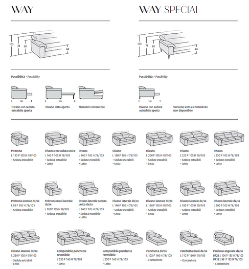 Way Special, cu picior, și Way în varianta de podea, sunt confortabile și învăluitoare. Spătarele rabatabile și scaunele detașabile sunt o garanție a confortului absolut.
