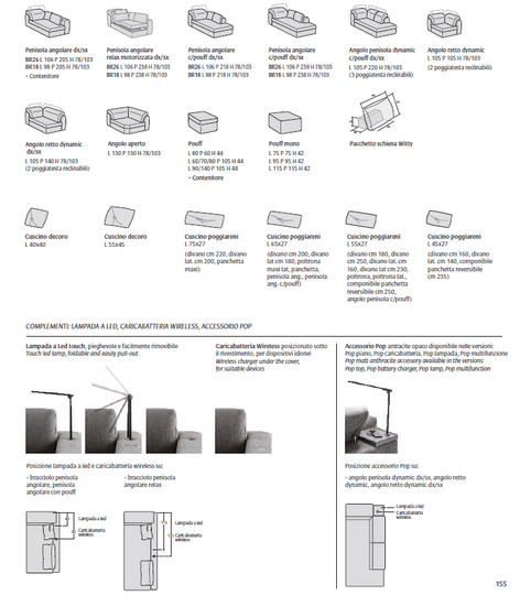 Liniara: L.220 cm P.105 cm H.78/103 cm