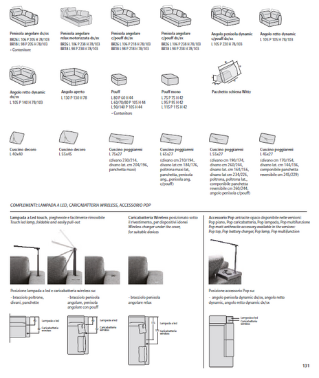 Liniara: L.210/194 cm P.105 cm H.78/103 cm