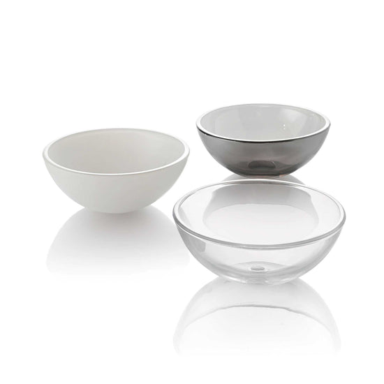 Candelabru din sticlă suflată manual cu capace suport de lămpi și detalii din metal cromat. Disponibil transparent sau afumat. Husa de lant de catifea.